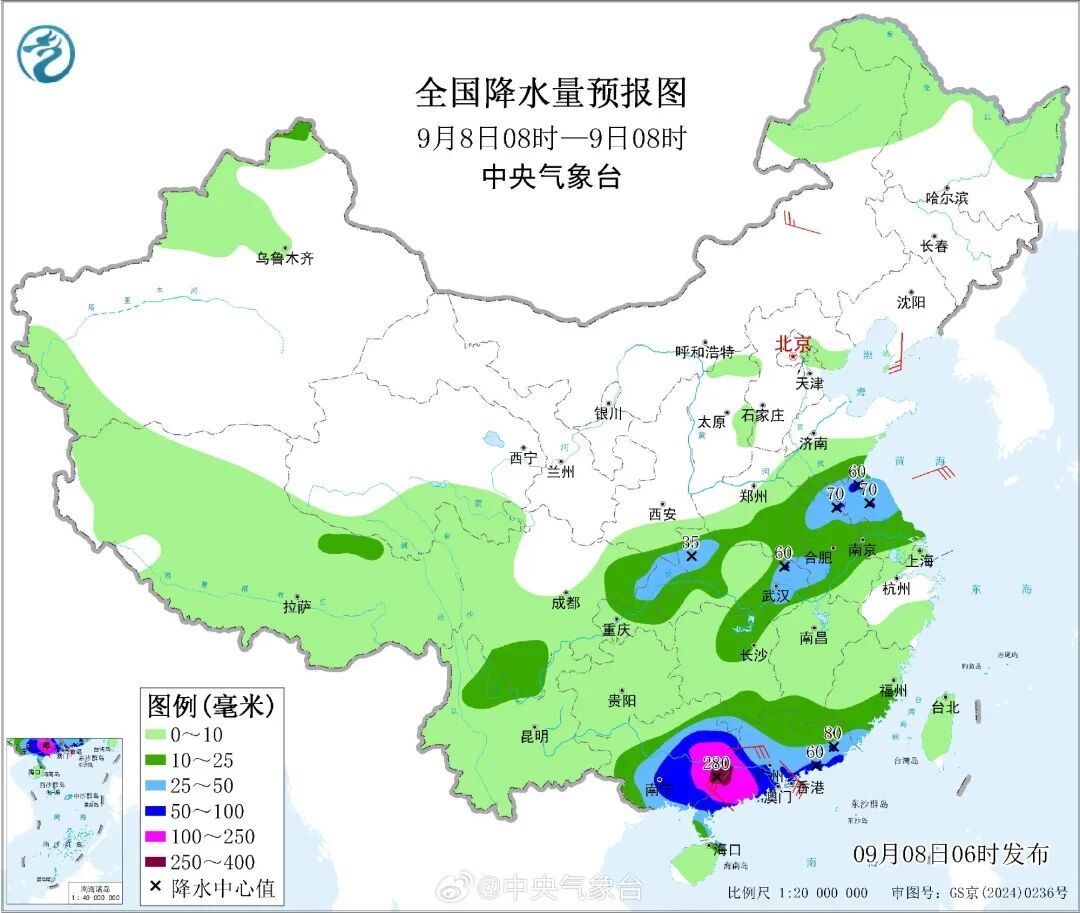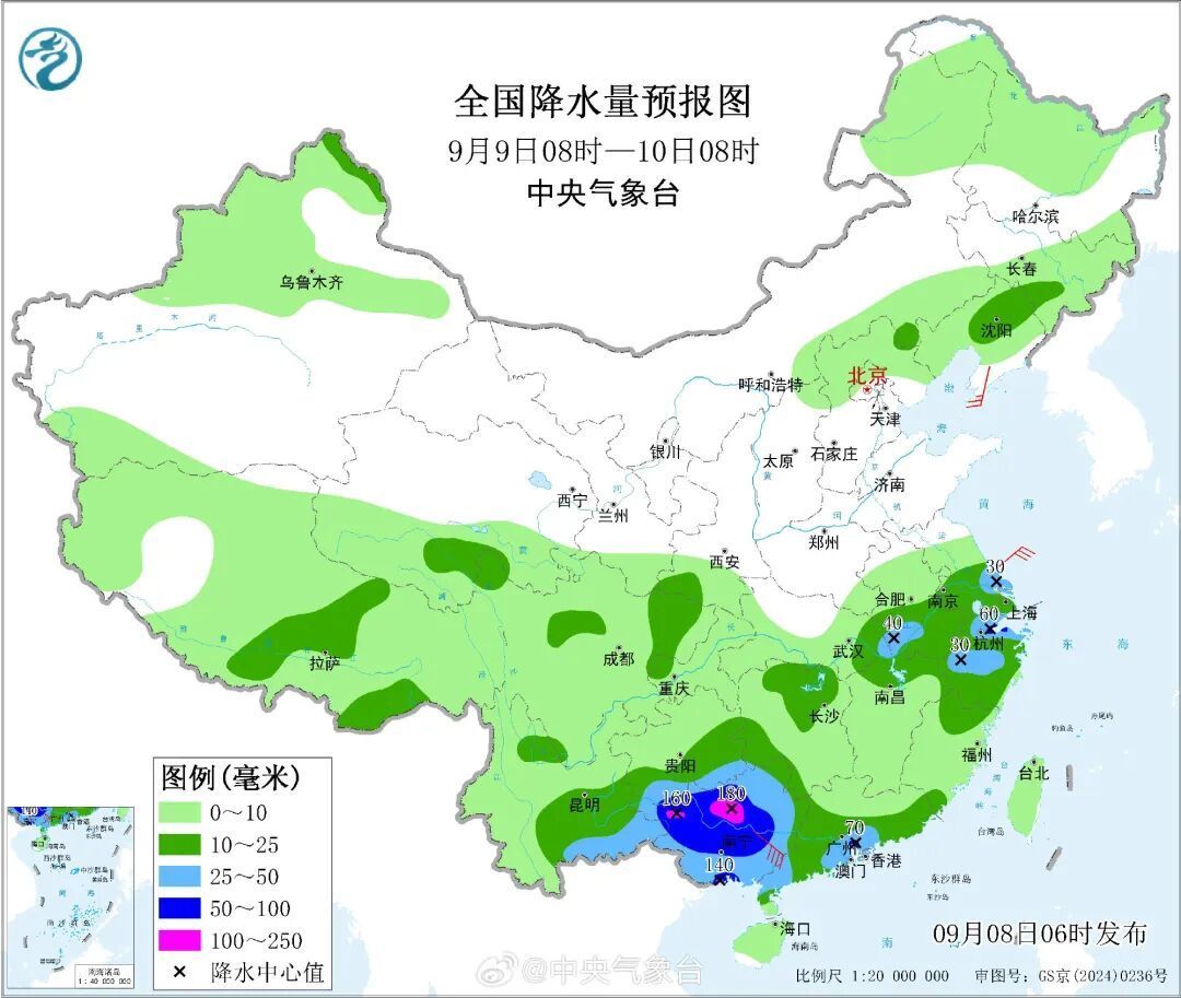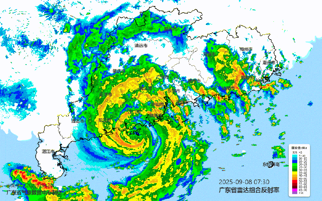 中央气象台预计,9月8日8时至9日8时,广东中南部、广西中东部有大到暴雨,其中,广西东部、广东西南部等地部分地区有大暴雨,局地有特大暴雨。